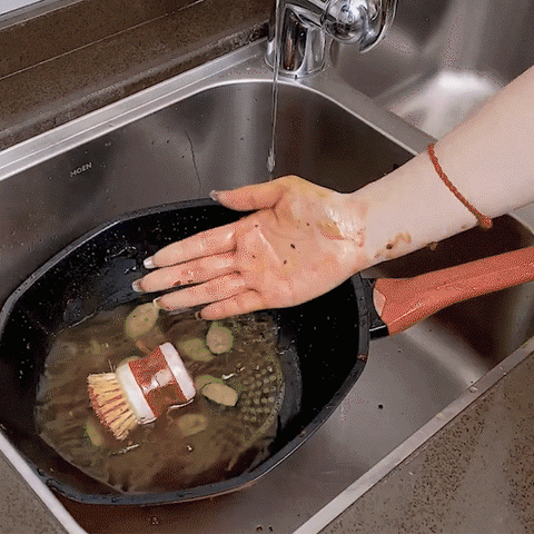 NEW UPGRADE DESIGN- The rotating design of the dish scrub brush makes the connection between the brush head and the handle more stable and avoids loosening and falling during use. It is the best choice for cleaning pots and pans. stoves and sinks in the kitchen